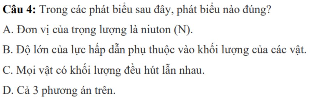 `+C` Mọi vật có khối lượng đều hút lẫn nhau (Đúng)