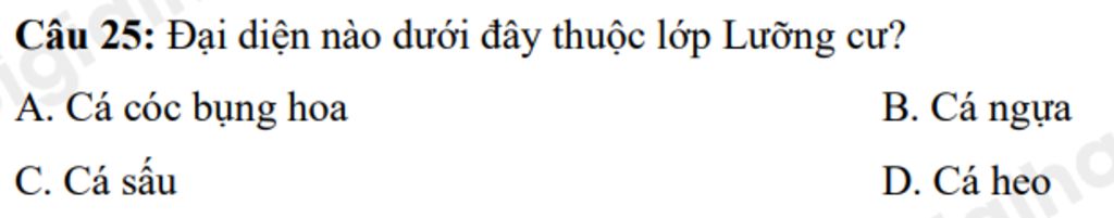 `+A.` Cá cóc bụng hoa thuộc lớp Lưỡng cư