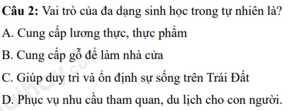 `=>` Là những vai trò của đa dạng sinh học trong đời sống con người.