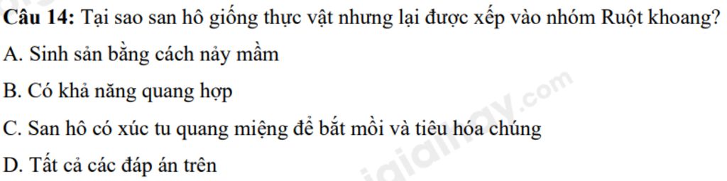 `-` Bởi san hô có xúc tu quang miệng để bắt mồi và tiêu hóa chúng.