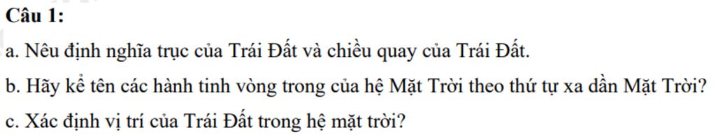 a. Trục của Trái Đất là đường nối từ cực Bắc đến cực Nam của nó và chiều quay của Trái Đất là từ tây sang đông.