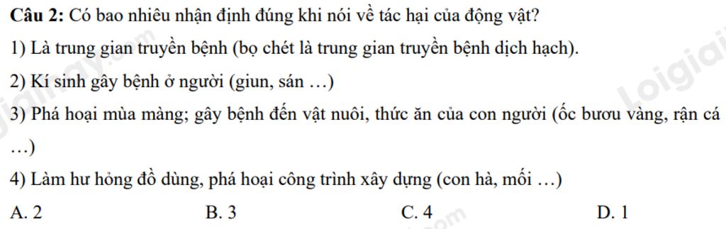 `@`Có `4` nhận định đúng khi nói về tác hại của động vật: