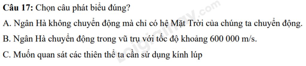 `+A` Ngân Hà không chuyển động mà chỉ có hệ Mặt Trời của chúng ta chuyển động sai vì Ngân Hà có thể chuyển động