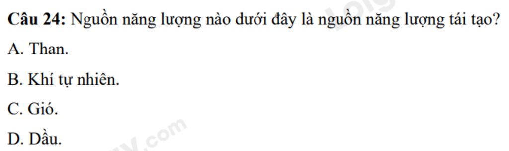 `-` Than, khí tự nhiên, dầu là các nguồn năng lượng không thể tái tạo.