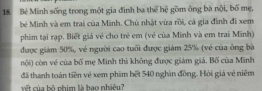 Mà bố Minh đã thanh toán tiền vé xem phim hết `540` nghìn đồng nên ta có `PT` sau: