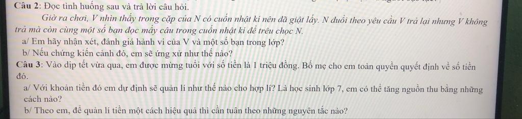 a, Hành vi của các bạn trong lớp và V là sai vì lấy cuốn nhật kí của bạn để xem.