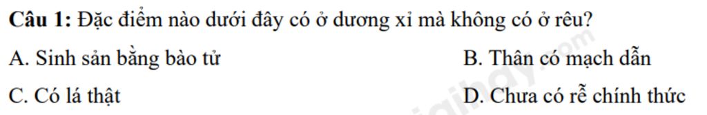 `=>` Dương xỉ có mà không có ở rêu là đặc điểm có mạch dẫn