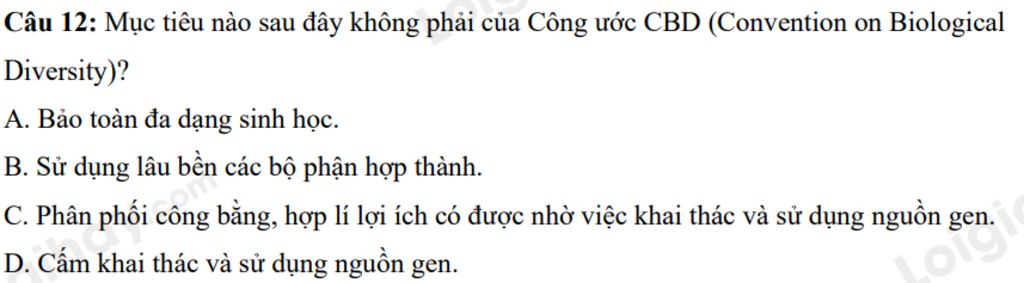 `-` Giải thích : Vì mục tiêu không phải của Công ước CBD là cấm khai thác và sử dụng nguồn gen.