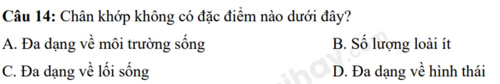 `@`Chân khớp có số lượng loài rất nhiều và đa dạng, chúng sống ở nhiều môi trường khác nhau, có đa dạng về lối sống và hình thái