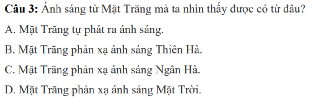 vì mặt trăng phản xạ ánh sáng mặt trời và ko tự phát ra ánh sáng