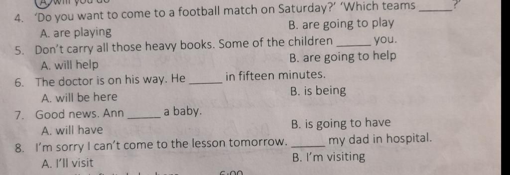 4. 'Do you want to come to a football match on Saturday?' 'Which teams