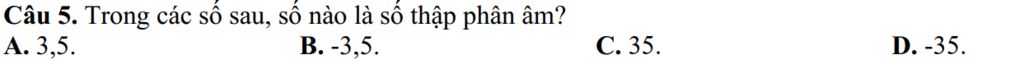 Câu 5. Trong các số sau, số nào là số thập phân âm?
