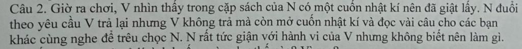 Câu 2. Giờ ra chơi, V nhìn thấy trong cặp sách của N có một cuốn nhật kí nên đã giật lấy. N đuổi