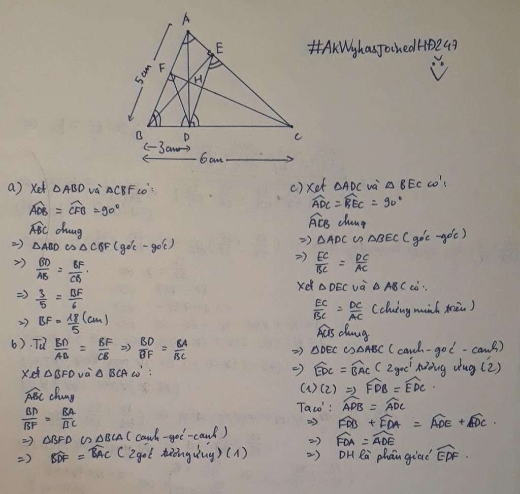 a, Cho BD =3cm ,BC=6cm,AB=5cm.Tính BF.