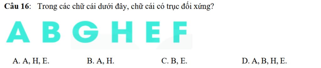 Hình có trục đối xứng trong hình trên là chữ `A ; H.`