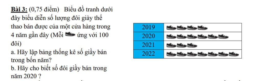 b) Số đôi giày bán trong năm 2020 là 600 đôi giày