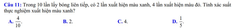 Xác suất thực nghiệm xuất hiện màu xanh là: