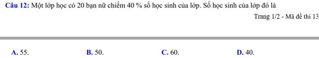 `20:40%=20:2/5=(20.5)/2=50(` học sinh `)`
