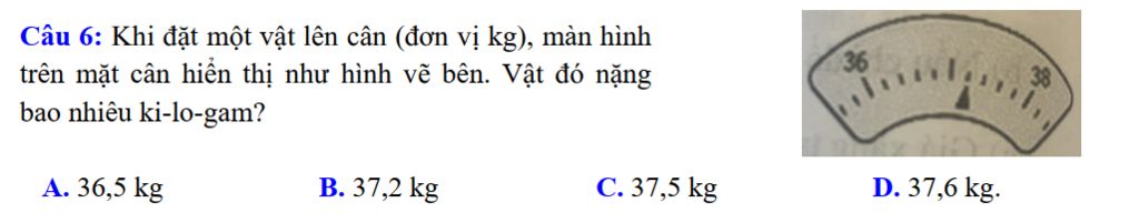 Theo màn hình hiển thị ta có số lượng `kg` hiện lên là: `37,2` `kg`