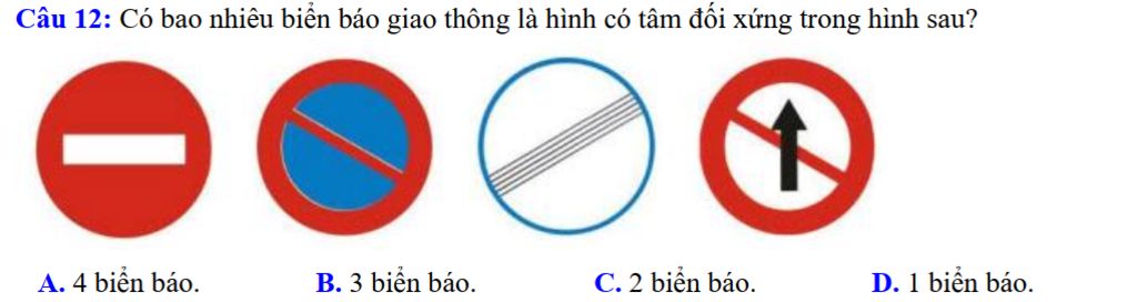 `=>` Trong `4` biển báo trên có `3` biển có tâm đối xứng