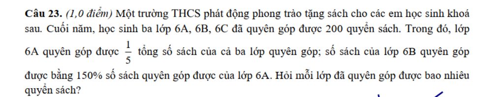 Lớp `6A` đã quyên góp được số quyển sách là: