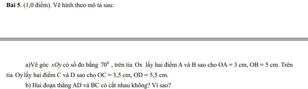 Bài 5. (1,0 điểm). Vẽ hình theo mô tả sau: