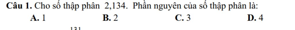 `2,134` có phần nguyên là `2,00` và phần thập phân là `0,134`