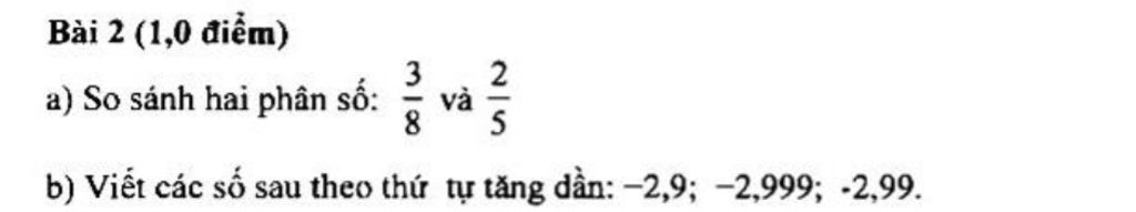 Sắp xếp tăng dần: `-2.999`; `-2.99` ; `-2.9`