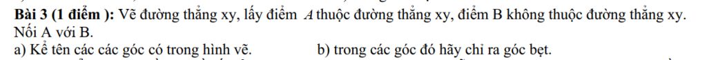 Các góc có trong hình vẽ là: `hat{xAy}; hat{xAB}; hat{yAB}`