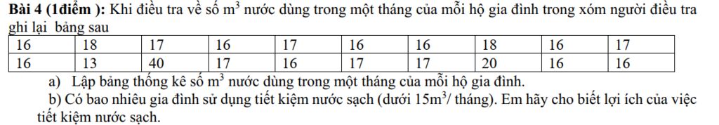 b) Có 1 gia đình sử dụng tiết kiệm nước sạch `(13m^3)`