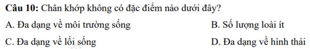 `=>` Chọn `B` vì ngành Chân khớp có số lượng loài nhiều.