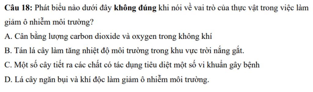 B. Tán lá cây làm tăng nhiệt độ môi trường trong khu vực trời nắng gắt.