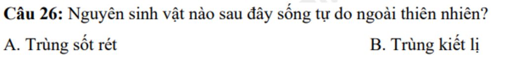 `@` Trùng sốt rét, trùng kiết lị, trùng bệnh ngủ là các nguyên sinh vật sống kí sinh trên cơ thể vật chủ.