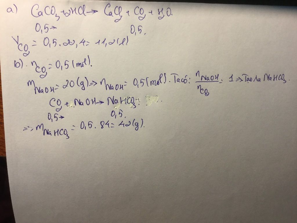 PTHH: CaCO3 +2HCl->CaCl2+H2O+CO2