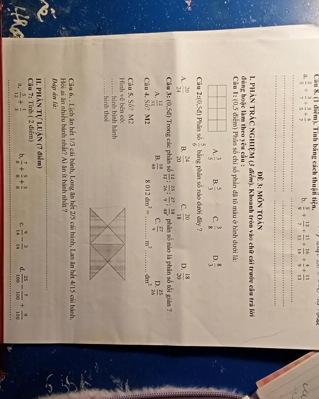 2/5=2x3/5x3=6/15 giữ nguyên 4/15