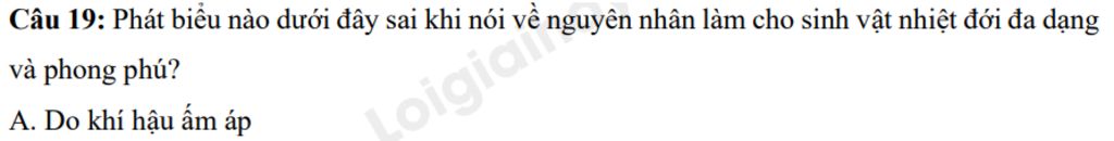 `-` Nguyên nhân iểu nào dưới đây sai khi nói về nguyên nhân làm cho sinh vật nhiệt đới đa dạng và phong phú là :