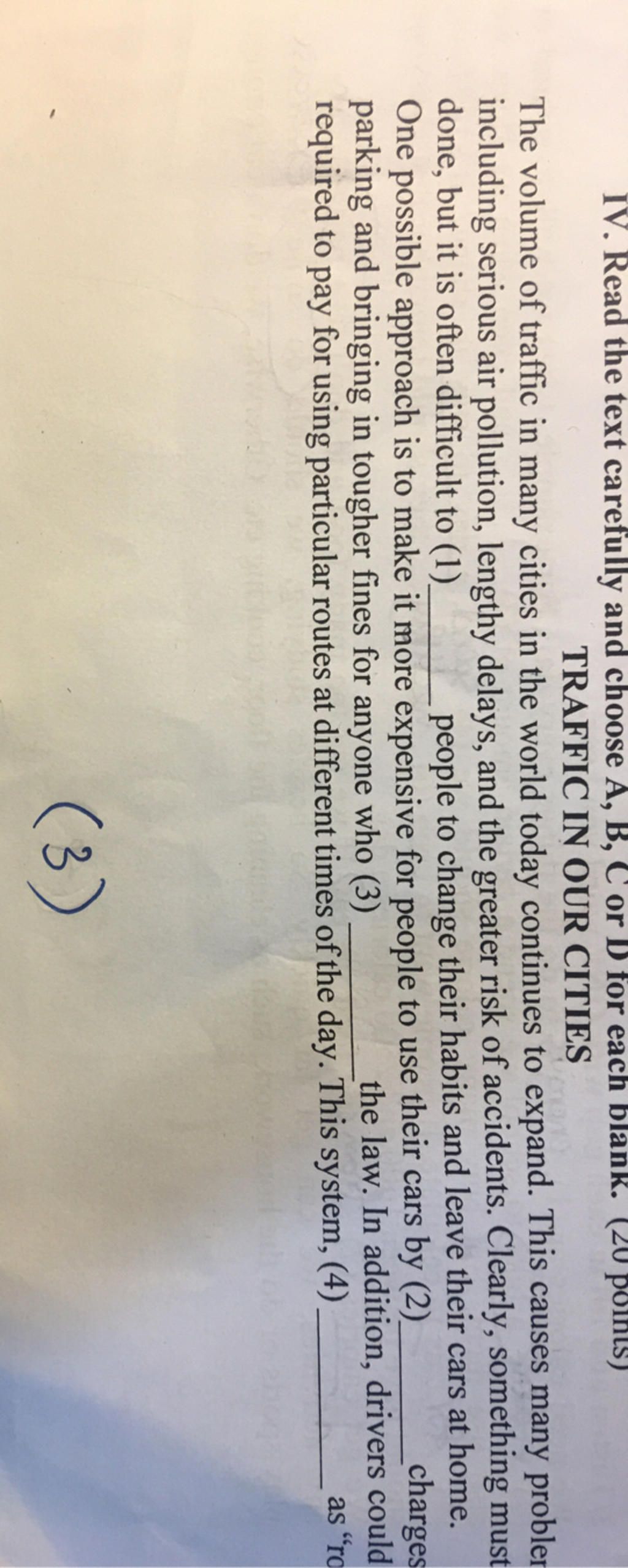 IV. Read the text carefully and choose A, B, C or D for each blank