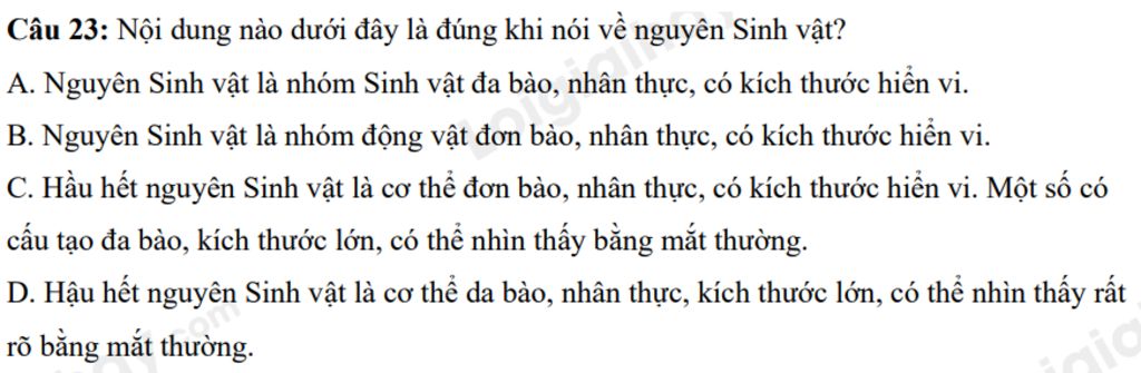 `@` Nguyên Sinh vật là nhóm động vật đơn bào, nhân thực, có kích thước hiển vi.