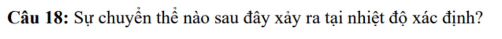 Câu 18: Sự chuyển thể nào sau đây xảy ra tại nhiệt độ xác định?