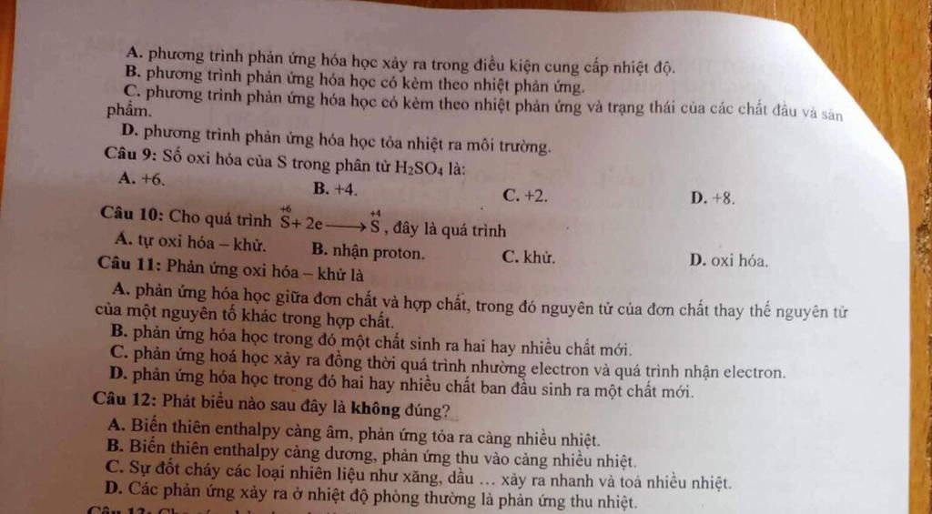 Quá trình khử là quá trình nhận electron của chất oxi hoá.