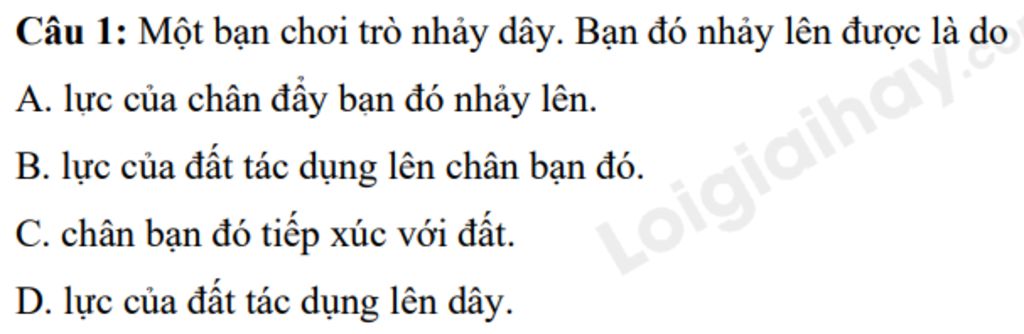 `-` Giải thích : Vì bạn đó nhảy lên được là do lực đẩy của đất tác dụng lên chân bạn đó. Lực là tác dụng đẩy, kéo của vật này lên vật khác.