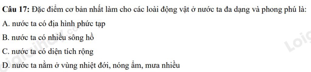 Nước ta có vị trí địa lý rất thuận lợi cho các loài động vật sinh sống. Vì nước ta nằm ở vùng nhiệt đới, nóng ẩm, mưa nhiều nên tạo ra sự đa dạng và phong phú về các loài động vật.