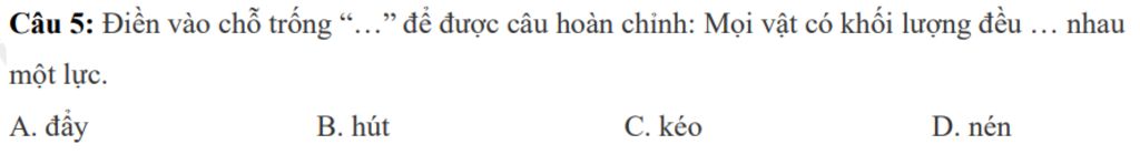 `@` Lực hấp dẫn là lực hút giữa các vật có khối lượng.