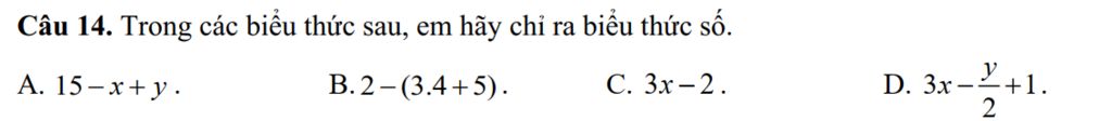 `A.` Có chứa biến x,y `->` ko phải bt số
