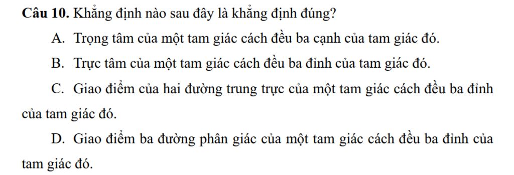`-` Trọng tâm của một tam giác là điểm giao nhau giữa các đường trung tuyến, cách đều ba cạnh của tam giác đó.