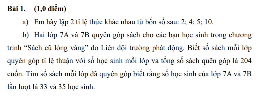 Vậy, số sách của lớp 7A và 7B quyên góp được lần lượt là 99 quyển và 105 quyển