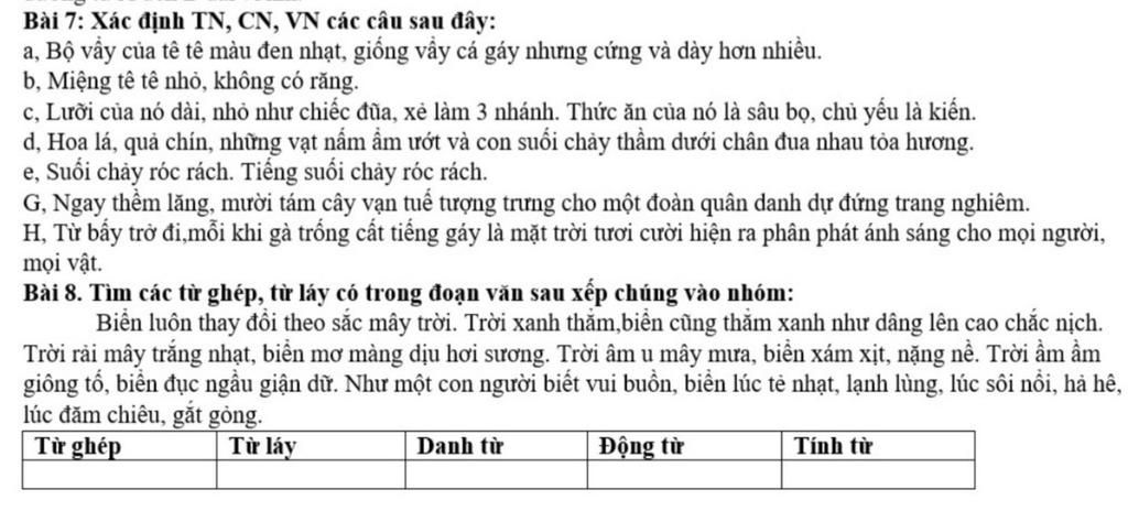 7 a) trạng ngữ: bộ váy của tê tê