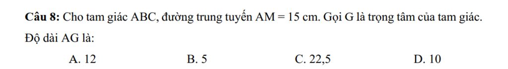 `@` Có đường trung tuyến `AM=15cm` và `G` là trọng tâm tam giác