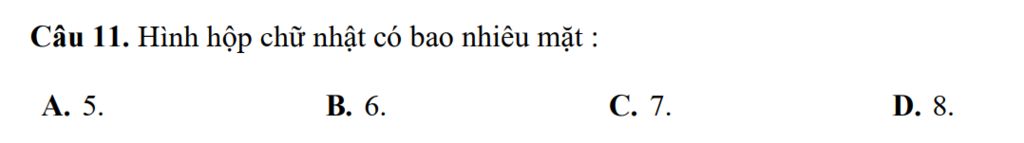 Hình hộp chữ nhật có `6` mặt