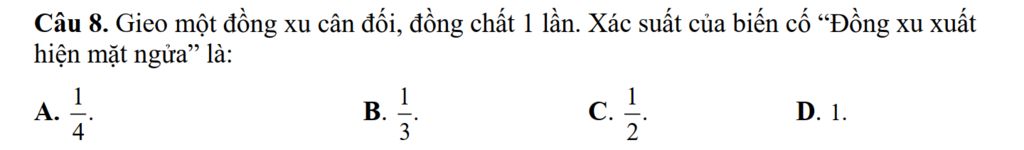 Xác suất của biến cố "Đồng xu xuất hiện mặt ngửa" là: